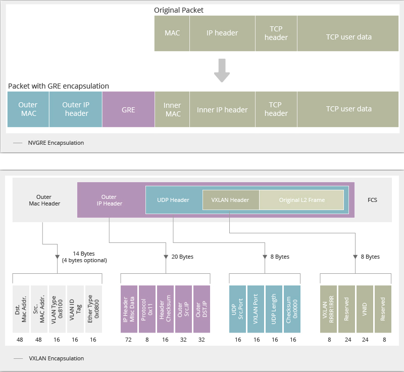 与 VXLAN 类似,NVGRE 是一种Overlay网络虚拟化技术,允许在第 3 层网络上创建虚拟第 2 层网络。不过VXLAN采用的是标准传输协议,即TCP/UDP协议;而NVGRE采用的是通用路由封装协议,即GRE协议。此外,前者由思科驱动,后者由微软支持。