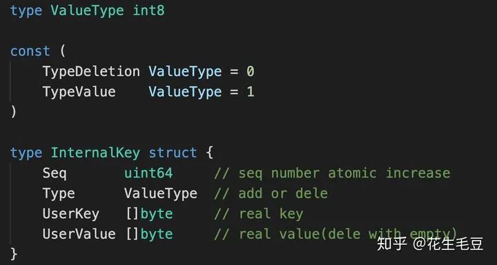 定义KV数据在LevelDB中的存储格式,使用Type字段来表明这是删除or插入一个新Key