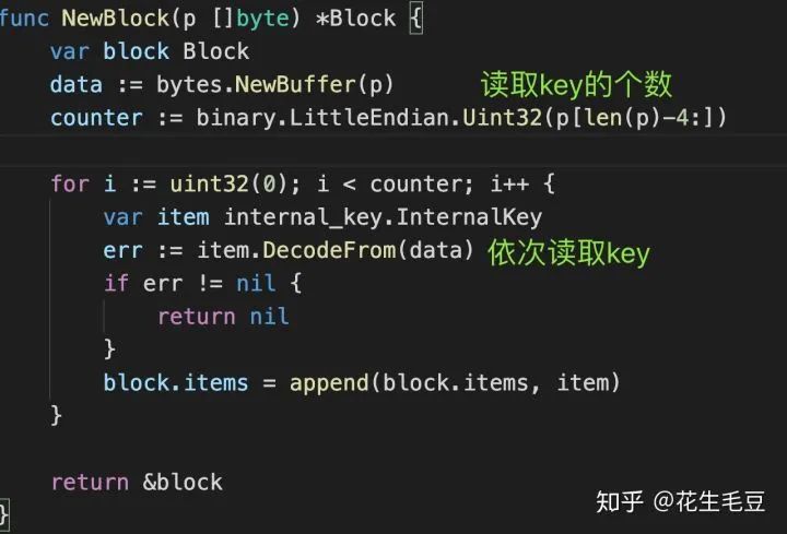 读取SST:按照如图的结构和如上的解释,对单个SST文件的读取(disk文件-->内存结构)应该先移动文件游标到最后,读取出Footer,因为footer是固定长度,很容易根据内容构建出footer对应的结构体。然后再根据Footer的内容移动游标读取MetaIndex和Index Block,再根据对应的信息去读取对应的Data/Index Block。这样一个完整的SST文件就被恢复成内存中的结构化对象。