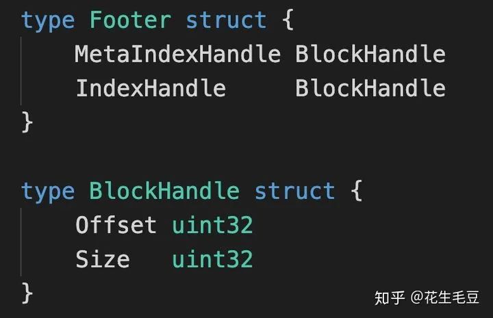 构造SST-Footer: 当内容都写完之后,添加一个固定类型值的Footer用于表明Index Block的offset和length,(还应包含MetaIndex Block的offset和length)。这样在读取时,就可以直接定位到Index Block。实际操作中offset和length都是用uint32的值来存储,因此是可以将文件游标移到最后- len(uint32)*2来读取Footer的。