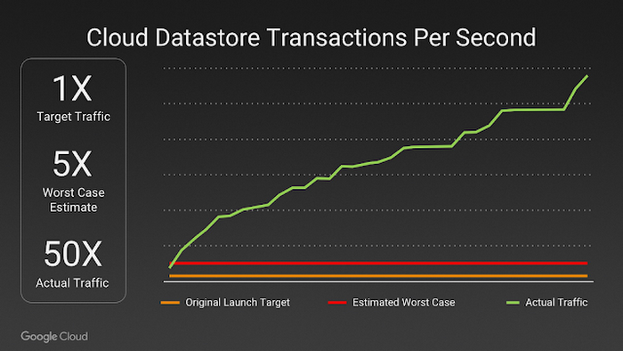 Niantic 寻求 Google 的帮助。谷歌迅速将数千个节点添加到集群中,这已经成为真正的行星规模。游戏顺利通过了万众瞩目的次日美国上线和日本当月下旬上线(是美国上线的 3 倍),数以万计甚至数十万玩家在线,每天 5~10TB 数据。