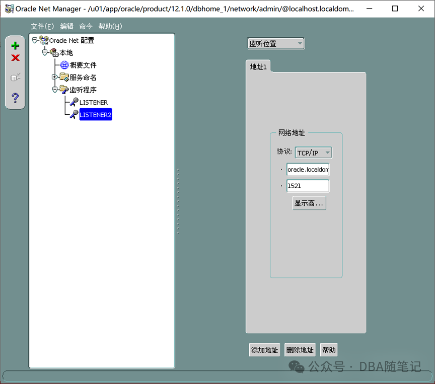 --集群用grid用户,单机环境用oracle用户$ srvctl add listener -listener listener_abc1$ srvctl remove listener -listener listener_abc1