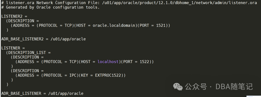 --手动基于实例添加静态监听SID_LIST_LISTENER =(SID_LIST =(SID_DESC =(GLOBAL_DBNAME = abc)(ORACLE_HOME = u01/app/oracle/product/19.7.0.0/db)(SID_NAME = abc1))(SID_DESC =(GLOBAL_DBNAME = whm)(ORACLE_HOME = u01/app/oracle/product/12.2.0.1/dbhome_1)(SID_NAME = whm1)))