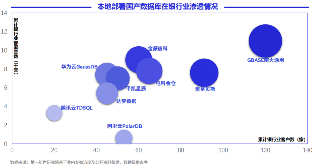 其中,国内领先的国产数据库供应商GBASE南大通用在典型厂商中实现累计部署套数及累计用户数两个维度领先,银行业本地部署渗透率排名第一。