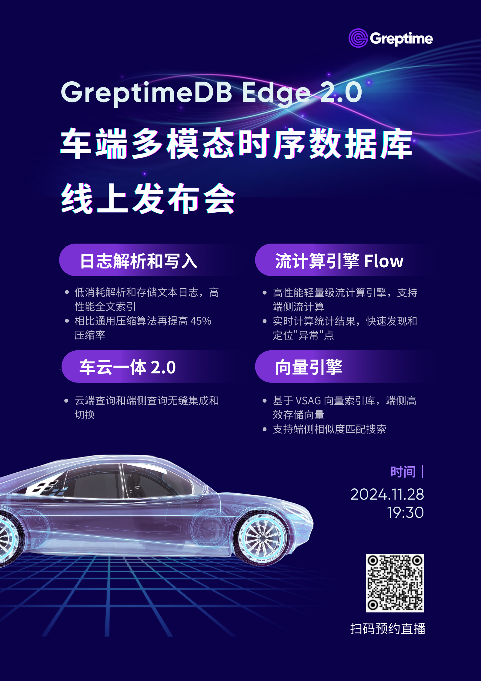 ✒️ GreptimeDB Edge 2.0 车端多模态数据库线上发布会来了!更多信息请看👇海报
