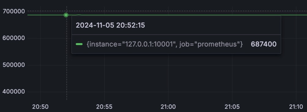 GreptimeDB Edge 在面对高写入负载时拥有良好的性能。在 35w 点每秒 以及 70w 点每秒的写入负载下,GreptimeDB Edge 的 CPU 使用率均值分别为 单核 3% 和 5%,峰值均未超过 15%。常驻内存大小在 130MB 左右。CPU 使用率和内存占用非常平滑。这些都促使 GreptimeDB Edge 能够在不影响整体系统性能的前提下,高效地处理大量数据,从而成为一个可靠的车端数据中心解决方案。