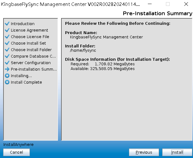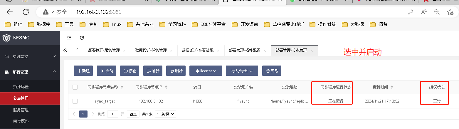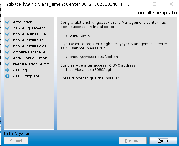 • Kingbase FlySync 与数据库部署在同一机器上。