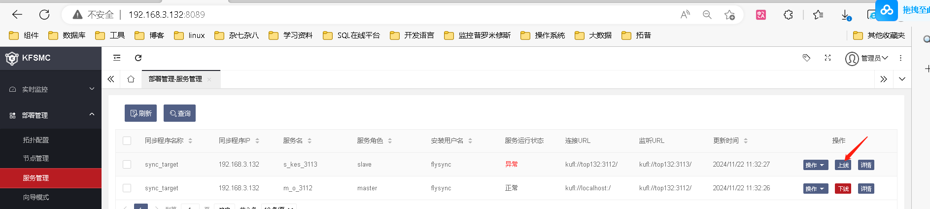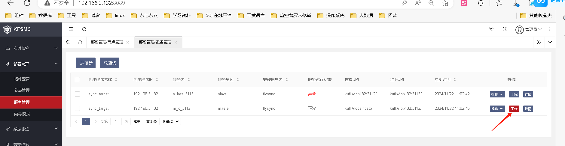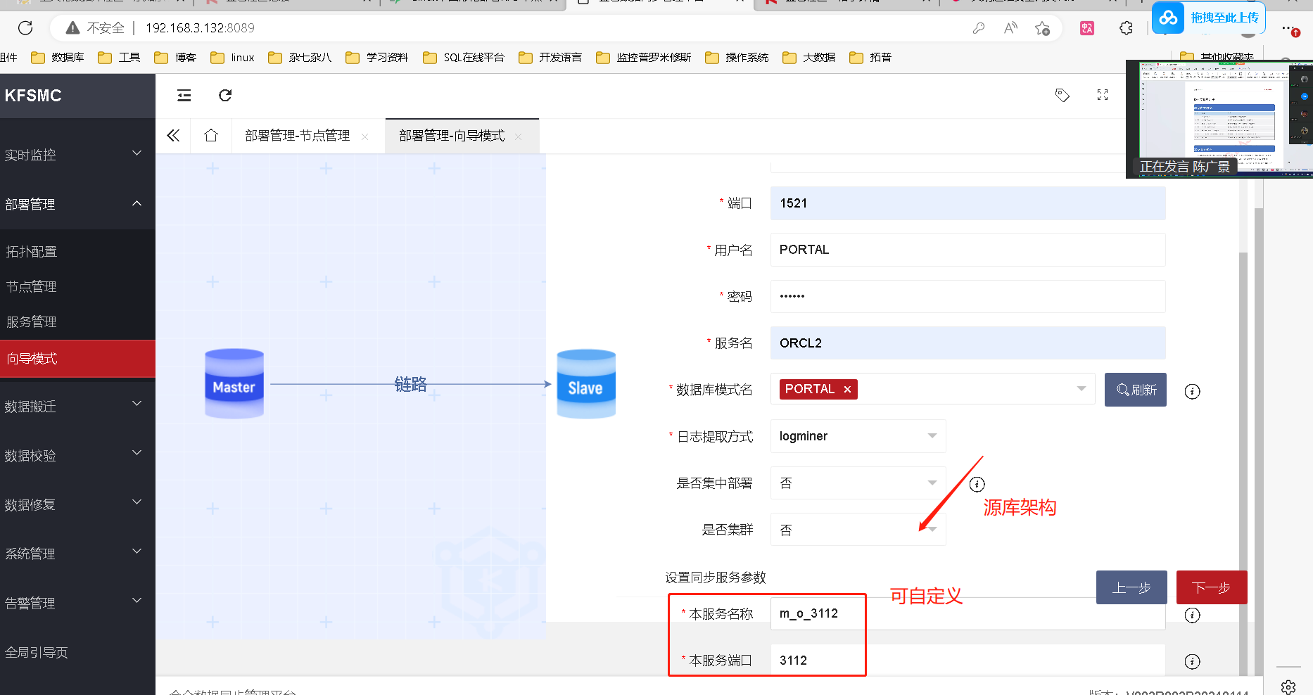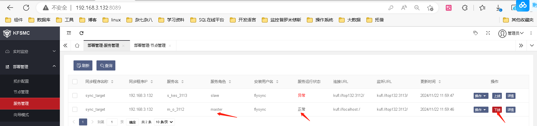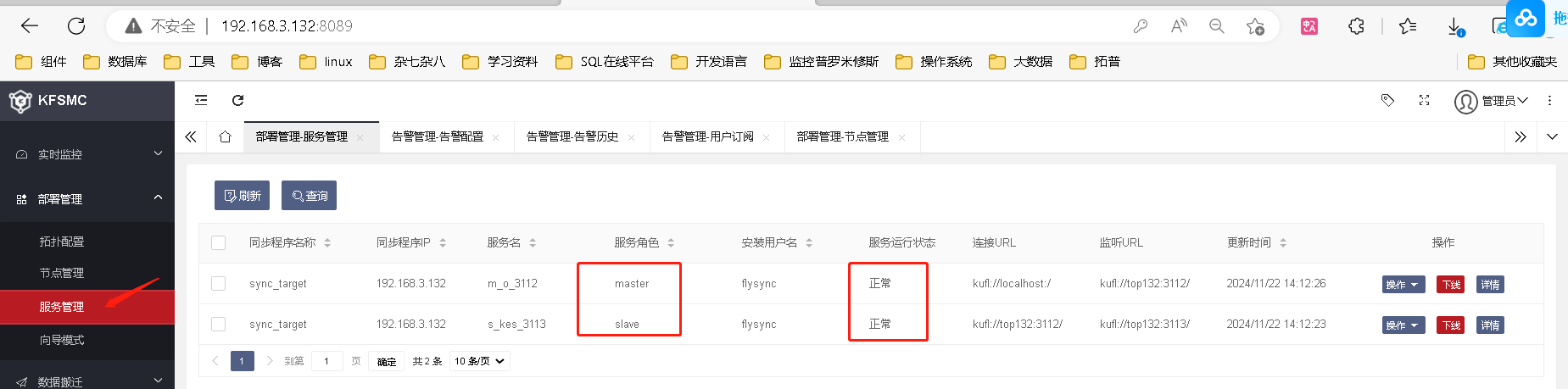 KFS的同步服务(即service)分两种角色,一种是master角色(负责解析增量数据),一种是slave角色(负责接收指定master解析的增量数据并加载到目标端数据库),一个slave服务只能指定接受一个master服务解析的增量数据;一个服务有且只能具有一个角色,因此实现端到端的增量数据同步,至少需要部署两个服务(一个master角色和一个slave角色的服务)。