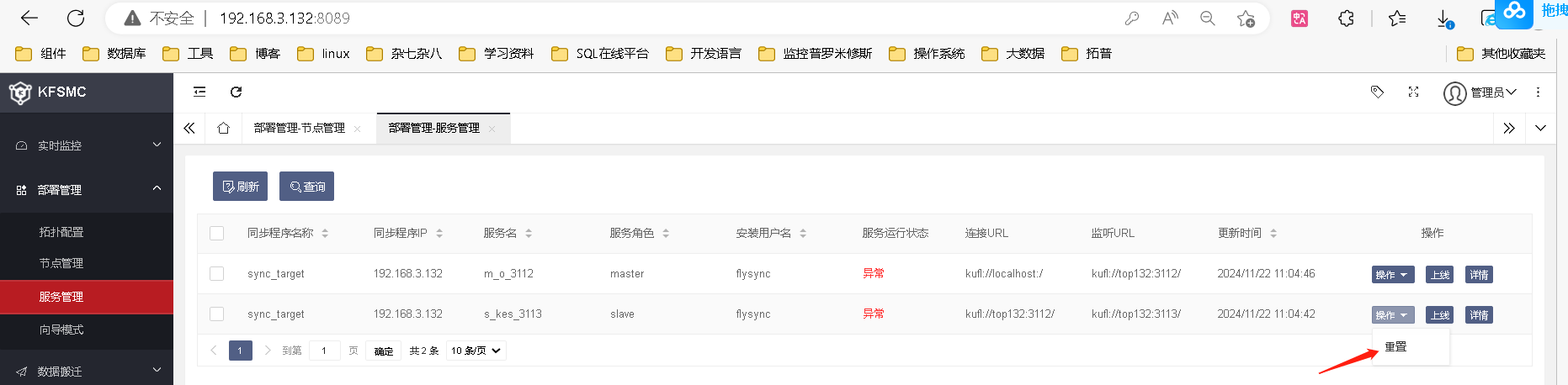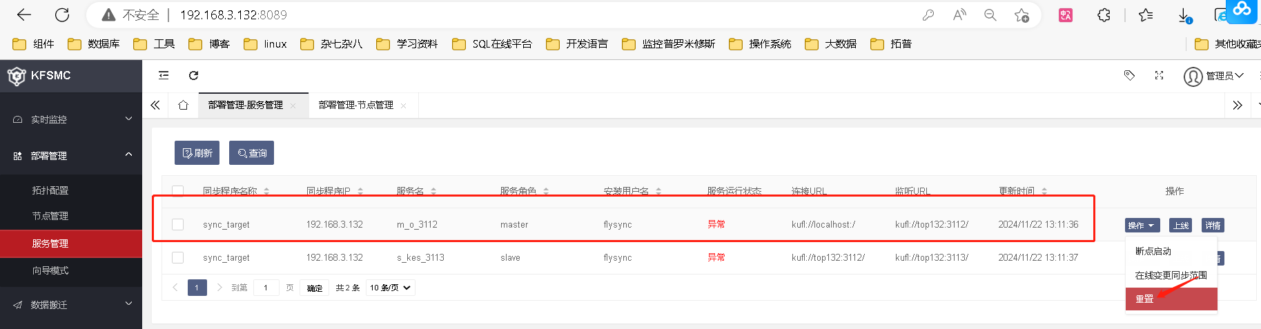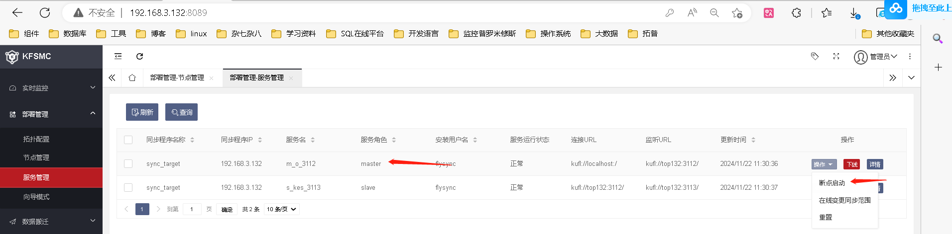 每次主同步服务进行断点同步,备同步服务都要重置,因为本身自己会记录断点,但是手动指定断点同步相当于把整个服务都重置了,整条链路都要重置。