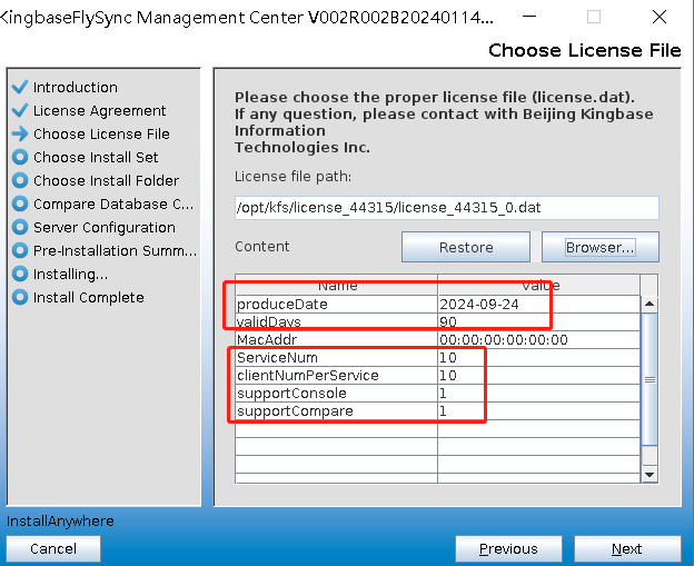 • KUFL 文件(KFS的中间数据交换文件)的磁盘空间要求:实际和具体的运行压力有关,建议:> 20GB