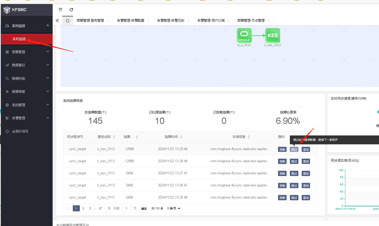 金仓异构数据同步软件Kingbase Flysync(简称KFS)是一种能够在异构数据平台间实现实时、增量数据同步的产品。