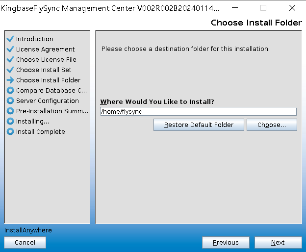 • Kingbase FlySync 与数据库分离部署,即不部署在同一机器上。