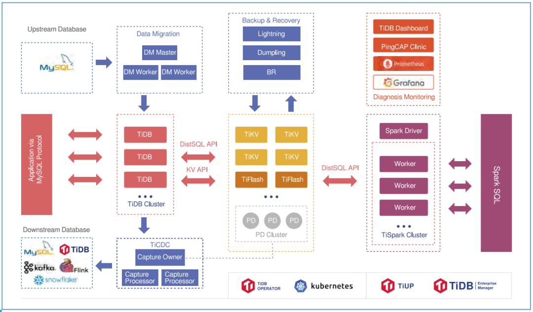 图1. TiDB开源分布式数据库产品架构与数据生态