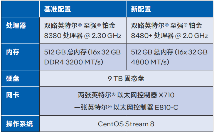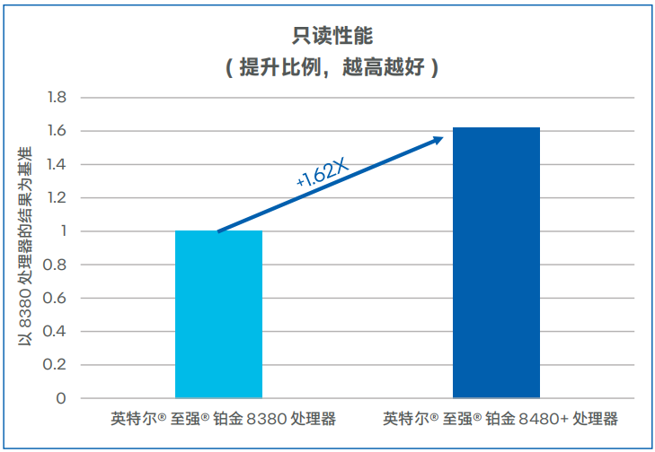 1 PingCAP截止2023年8月的内部测试结果。测试配置—基准配置:双路英特尔® 至强® 铂金 8380 处理器 @ 2.30 GHz,512 GB 总内存 (16x32 GB DDR4 3200 MT/s),9 TB 固态盘,两张英特尔® 以太网控制器X710,一张英特尔® 以太网控制器 E810-C,CentOS Stream 8;新配置:双路英特尔® 至强® 铂金 8480+ 处理器 @ 2.0 GHz,512 GB 总内存 (16x32 GB 4800 MT/s),9 TB 固态盘,两张英特尔® 以太网控制器 X710,一张英特尔® 以太网控制器E810-C,CentOS Stream 8。英特尔并不控制或审计第三方数据。请您审查该内容,咨询其他来源,并确认提及数据是否准确。