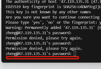 使用完整的ssh命令,锁定登录的用户为root,因为这里管理员提供的密码为root用户的密码。