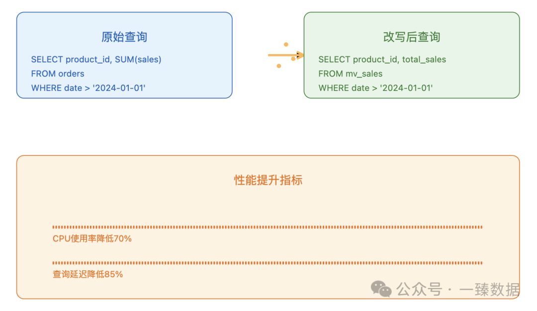 首先是多表JOIN查询加速。传统JOIN查询就像一场复杂的相亲配对,要把符合条件的数据一一匹配,非常耗时。物化视图则像一个"红娘",提前帮你把匹配结果存好,查询时直接取用就行。
