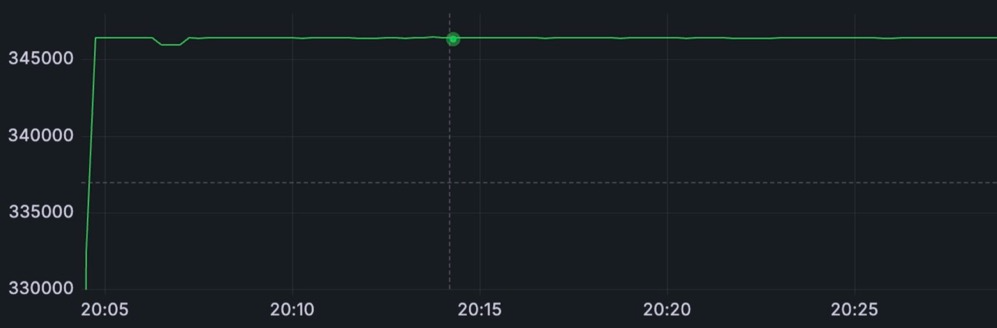 在每秒 35w 点 的写入负载下,我们采集了 GreptimeDB Edge 在 30 分钟内的性能数据。GreptimeDB Edge 的 CPU 使用率平均 单核 3%,峰值未超过 15%。在内存使用方面,GreptimeDB Edge 的常驻内存大小(Resident Memory Size)在 120 MB 至 166 MB 之间波动,平均为 132 MB。具体数据如下所示,供大家参考: