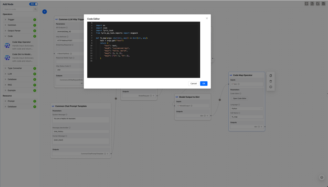 3、AWEL 支持在沙箱环境中执行代码,可以通过code算子处理模型返回值。Lyric: A Rust-powered secure runtime for AI-Agent.