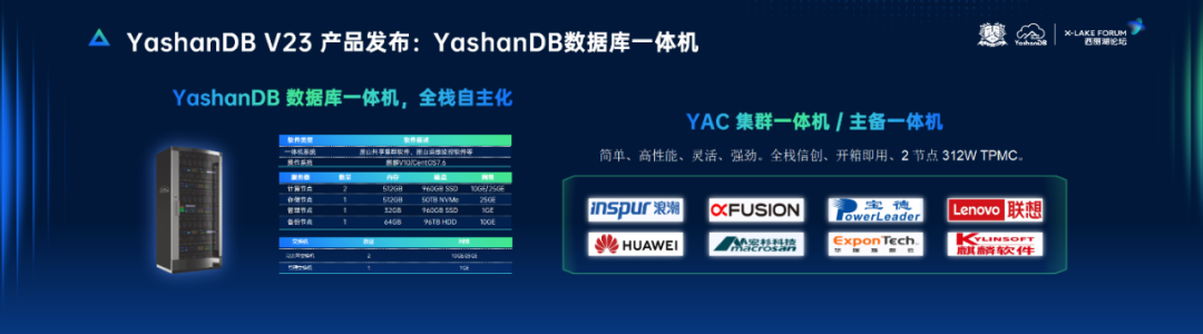云和一体机是手掌的两面,云解决的是运维效率问题,一体机则能满足用户对更轻量、更高效、更极致性能的要求。我们今年也和浪潮、超聚变、宝德、联想、华为、宏杉、麒麟软件等国内头部软硬件厂商共同推出了全栈国产化的崖山数据库一体机,来为用户提供简单、灵活、强劲的软硬一体化解决方案。