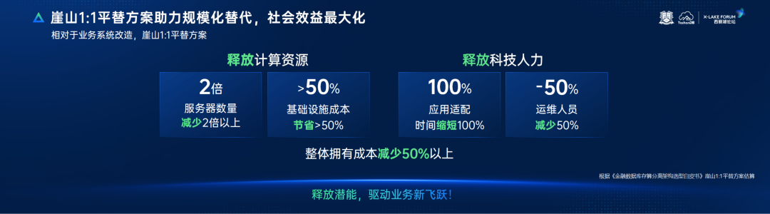 由此可见,崖山1:1平替方案能够为金融机构提供更经济、更普适的规模化替换路径,进而释放更多业务价值,赋能新质金融。