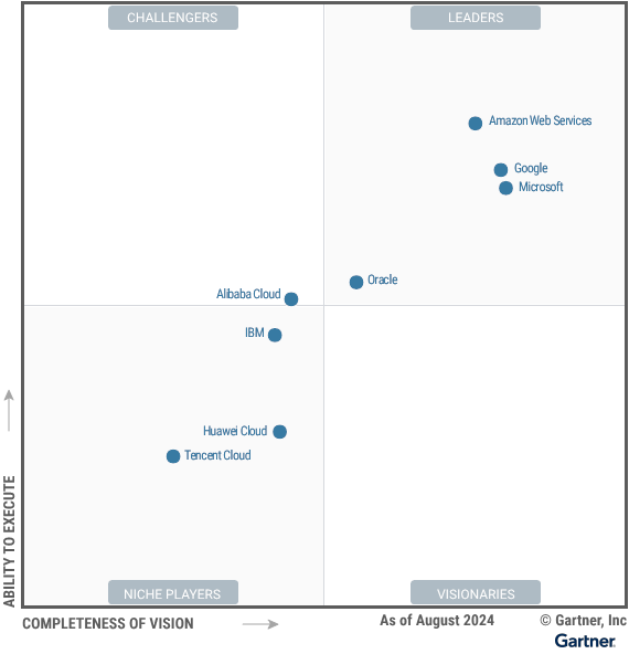 *Gartner,战略云平台服务魔力象限,2024年10月21日,David Wright,Dennis Smith,Miguel Angel Borrega,Alessandro Galimberti,Carolin Zhou。