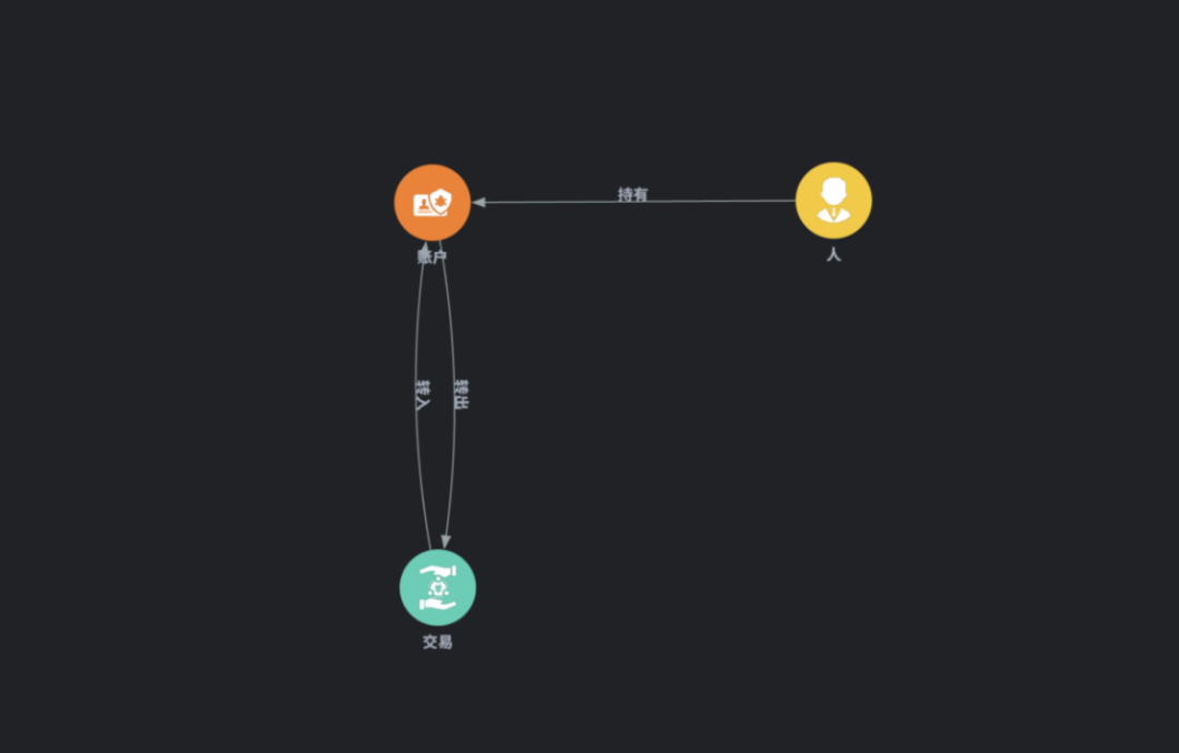 该模型通过定义关键实体和关系来全面描述银行账户的活动及其背后的复杂网络关系。实体包括银行账户、账户持有人、交易事件;关系包括人持有账户、账户转入和转出交易事件。这样的设计不仅能够细致地记录和分析每个交易行为,还可以通过交易详情信息揭示交易模式和潜在的异常活动,为金融分析风险管理提供有力支持。