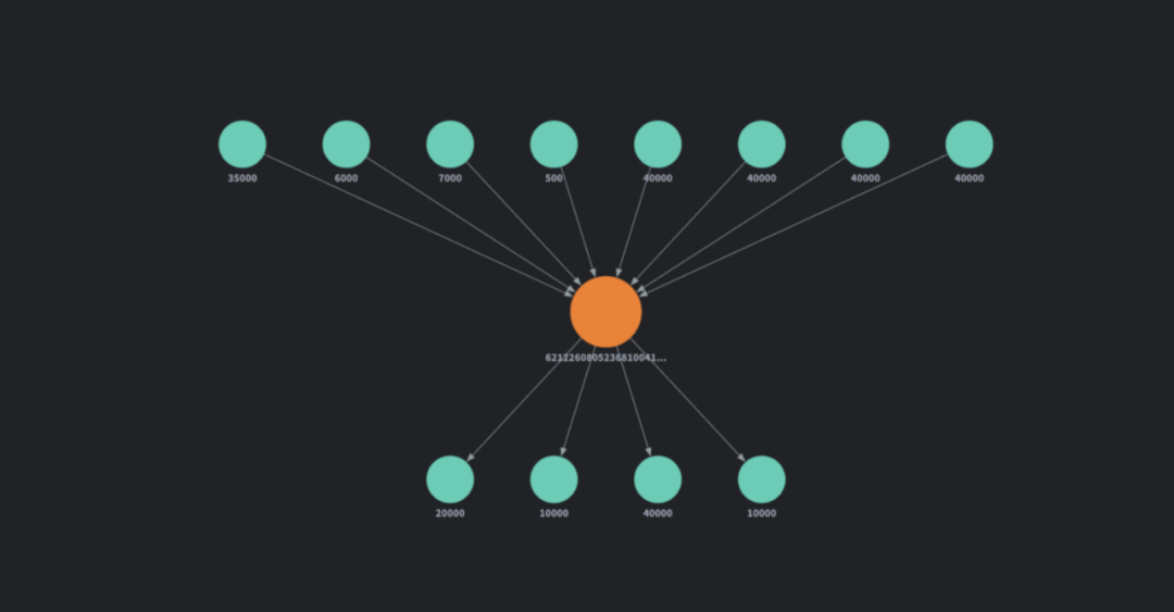 在本案例中,通过对目标账户的分析,探索了其流入和流出的两层关联交易网络,并结合转账金额与转账时间,深入探查可疑交易账户,最终得出了以下结论: