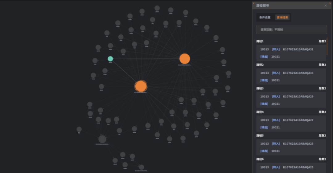 某金融机构发现一个目标账户的交易行为异常,怀疑存在非法资金操作。为了深入了解这个账户的资金流动情况,我们使用图分析平台,对该账户的交易网络进行全面分析,以识别潜在的可疑交易行为和资金来源。