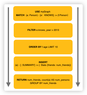 它具有一系列的功能正交的语句,如用于图模式匹配的 MATCH