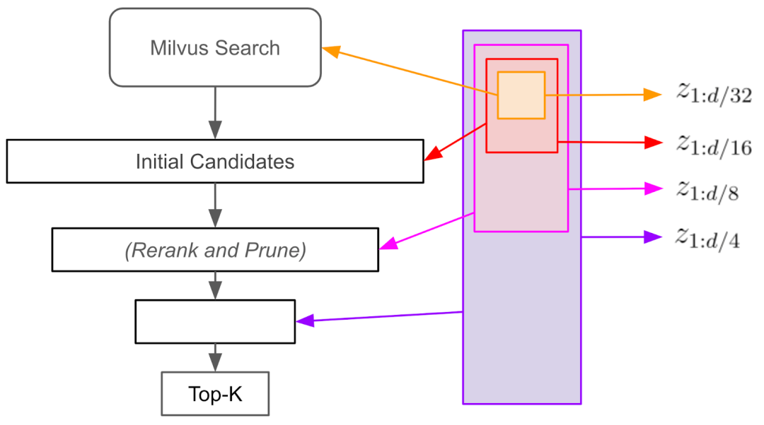 Notebook: Funnel Search with Matryoshka Embeddings(https://github.com/milvus-io/bootcamp/blob/master/bootcamp/tutorials/quickstart/funnel_search_with_matryoshka.ipynb)