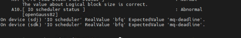 先查询当前机器的磁盘中的io调度器,将上面错误盘的io调度器修改