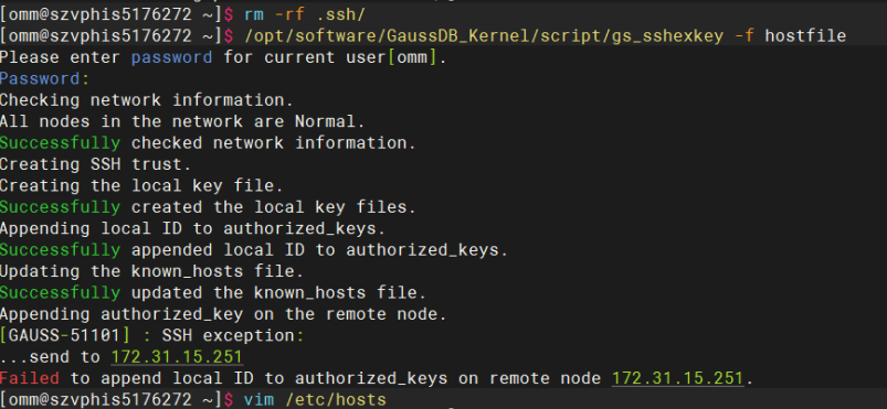 到上面出错的目录下:/home/lh/gauss_om,将所有涉及 ssh 相关的文件进行格式化