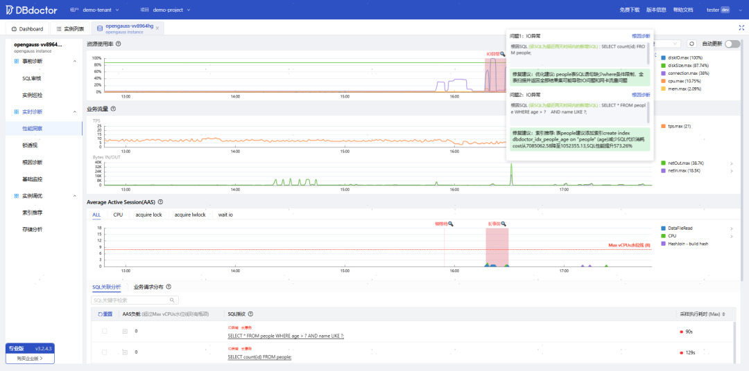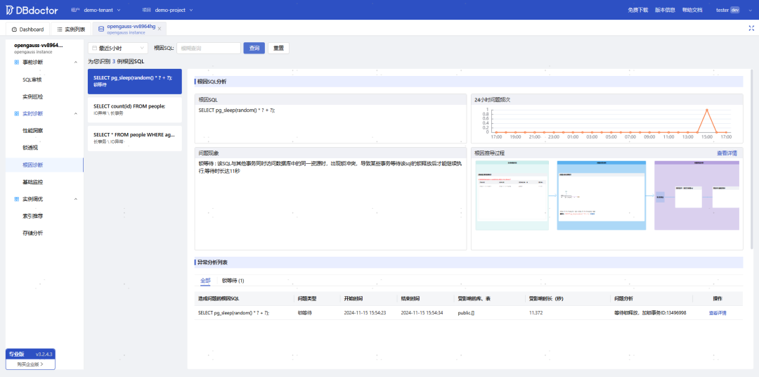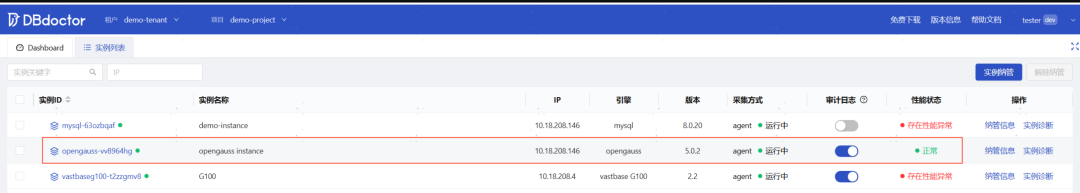 openGauss是一款开源关系型数据库管理系统,内核深度融合华为在数据库领域多年的经验,结合企业级场景需求,持续构建竞争力特性。openGauss数据库具有高性能、高可用性、高安全性、易于运维和完全开放的特点。它适用于需处理高并发在线事务、大数据量的核心系统。DBdoctor是一款企业级数据库监控、巡检、性能诊断、SQL审核与优化平台,利用eBPF透视数据库内核,可一分钟定位数据库性能问题,实现根因诊断,并给出优化建议。目前DBdoctor v3.2.4 版本新增了对openGauss的支持,可为 openGauss 用户提供高效的数据库性能诊断和监控服务。如何快速纳管openGauss