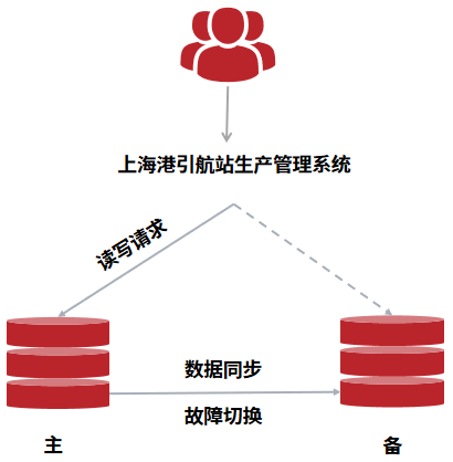 本项目中,金仓数据库采用一主一备高可用集群架构支撑上海港引航站“i-Pilot智慧引航”综合管理平台的运行,满足用户高可用需求,部署架构图如下所示: