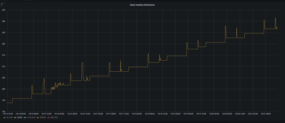 监控统计信息健康度的变化:观察统计信息健康度的其他区间变化速率,确保调整后统计信息健康度的恶化速度不会超过自动分析的执行速度。