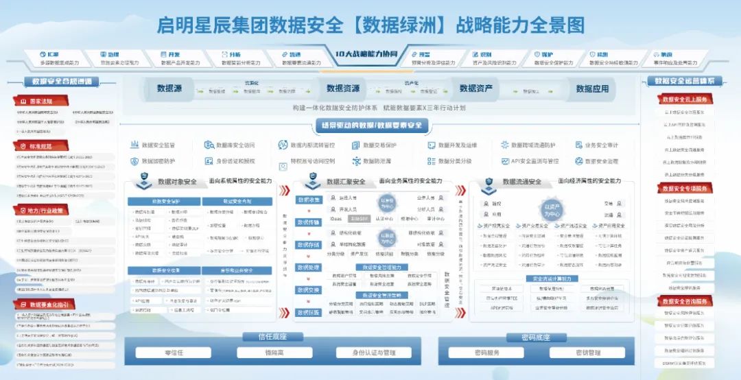 数据安全已成为推动经济持续增长的重要基石,充分发挥数据要素价值,培育新质生产力,必将为中国经济增长提供源源不断的澎湃动能。启明星辰集团【数据绿洲】战略以数据对象安全、数据汇聚安全、数据流通安全为底座,遵循数据资源化、资产化发展通道,打造了包括隐私保护、行为分析、流通管控,跨域使用控制等10大安全能力,并且与场景紧密结合,实现在数据要素化下的“安全与业务协同”,为我国数字经济发展保驾护航。