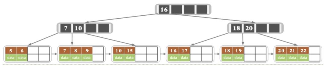与B树最大的不同是内部结点不保存数据,只用于索引;所有数据(或者说记录)都保存在叶子结点中;叶子结点本身依关键字的大小自小而大顺序链接;并且每个叶子结点都存有相邻叶子结点的指针。