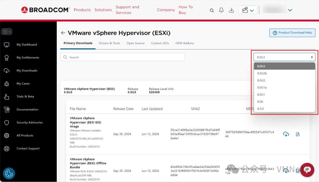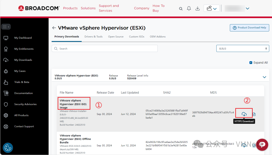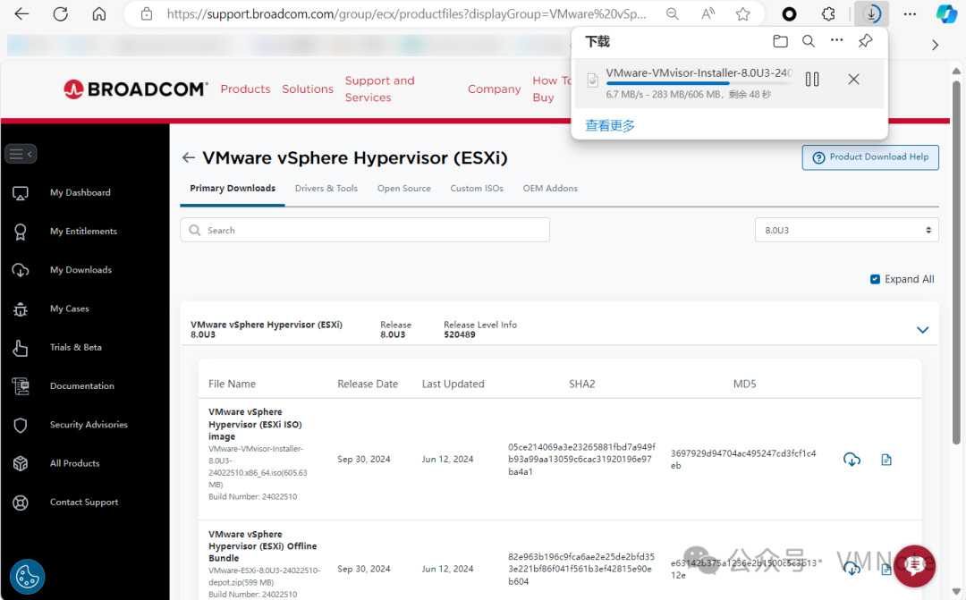本文主要介绍如何从博通官网下载VMware 原版ESXi安装包,其中要注意的是