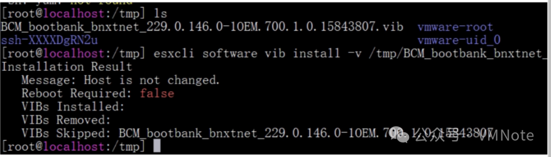 总结:在ESXi上安装驱动包或者软件包,如果ESXi当前的版本和要安装的版本一样,那么默认会跳过安装,如果要重装当前的版本,建议可以先卸载后,再重新安装。卸载驱动的具体步骤可以参考:《如何使用ESXCLI命令删除VMware ESXi上的软件包》