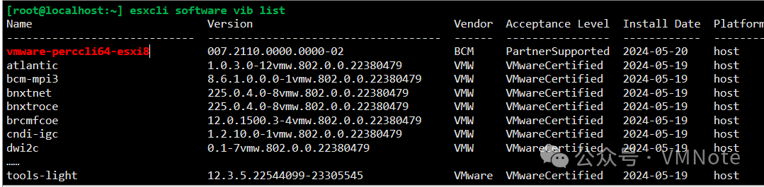 查看ESXi上所有已经安装的软件包/驱动包的命令