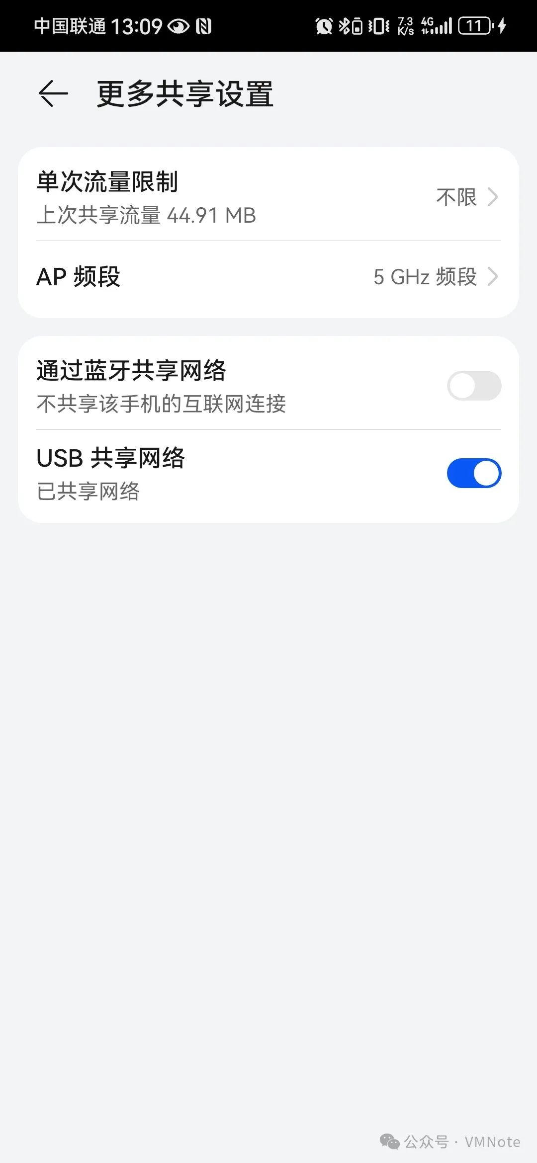第2步,将手机的热点打开,并选择通过USB共享数据