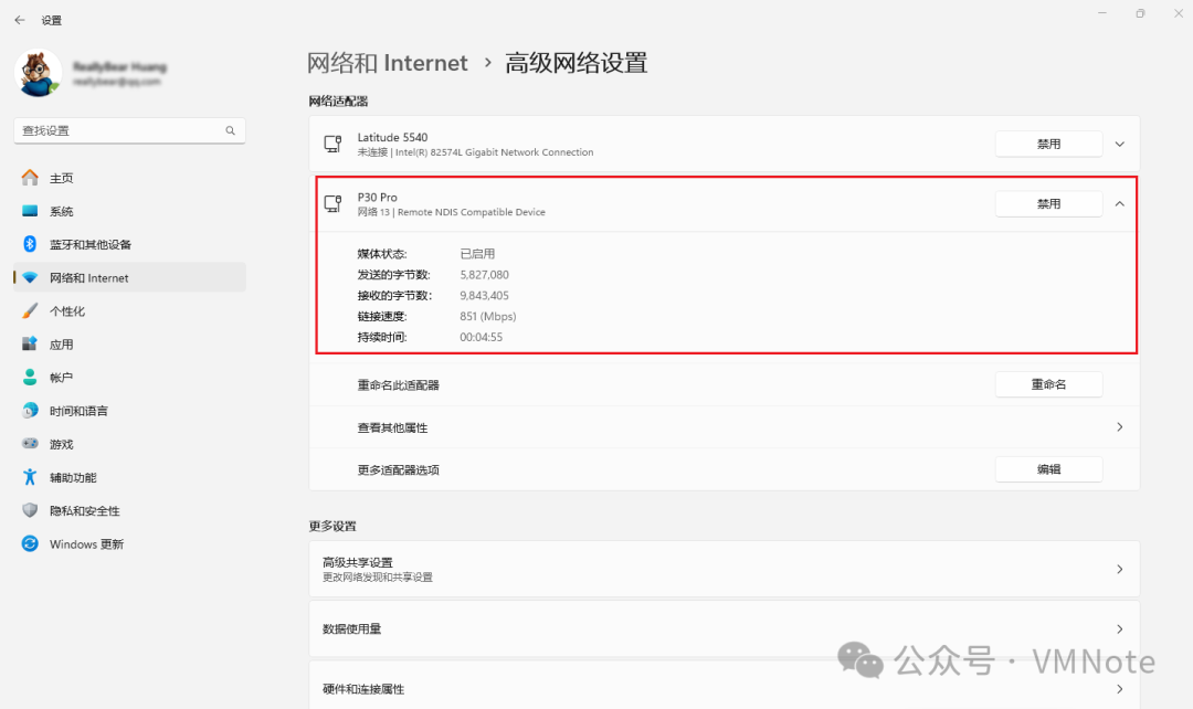 第5步,确认虚拟机里面多出一个网卡,且处于连接状态