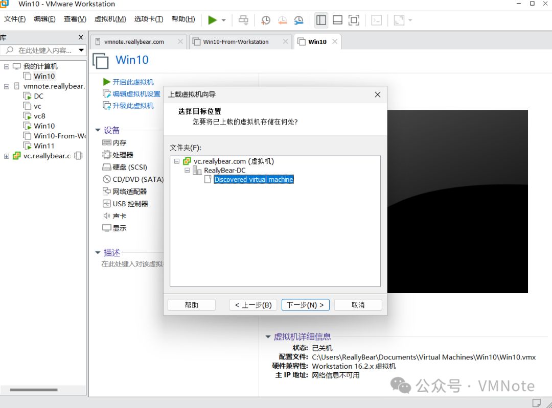 第5步,确认虚拟机下载成功,并出现在Worktation本地虚拟机列表中