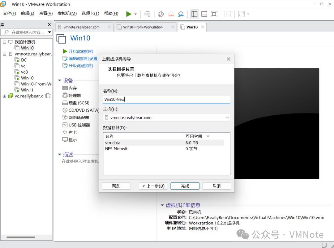 第6步,确认虚拟机上载成功且出现在ESXi的虚拟机列表中
