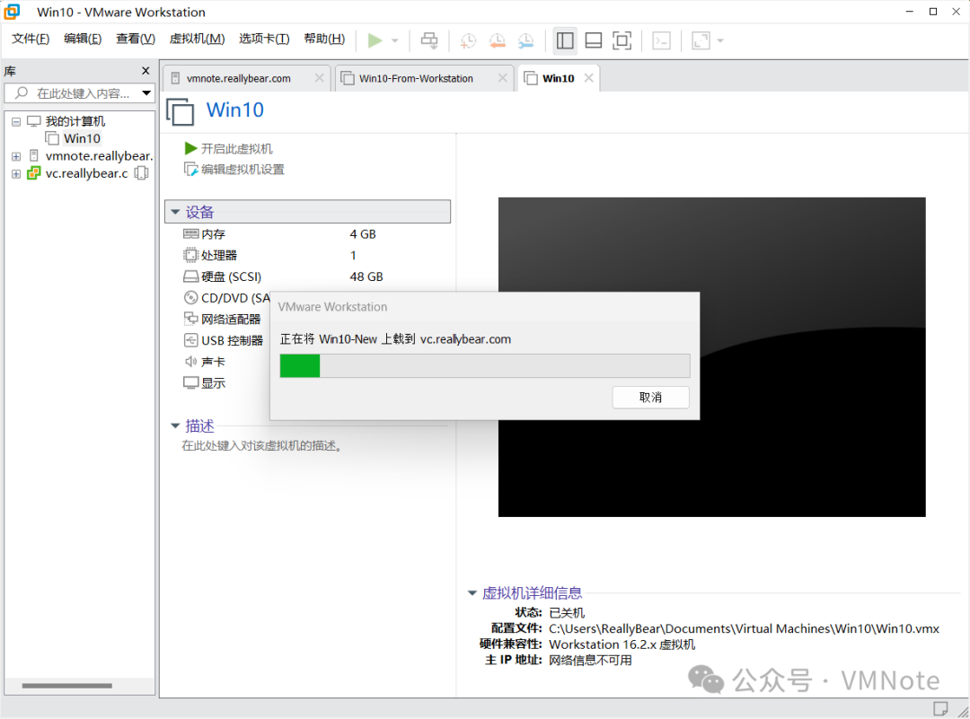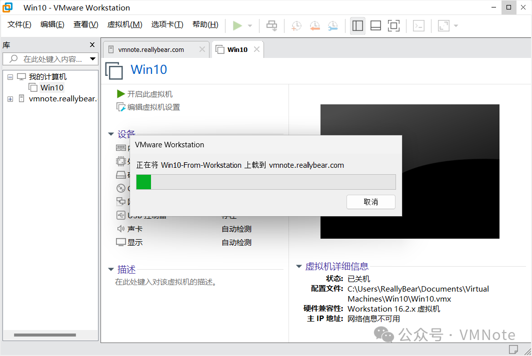 注:上载的速度取决于虚拟机的文件大小以及网络的速度