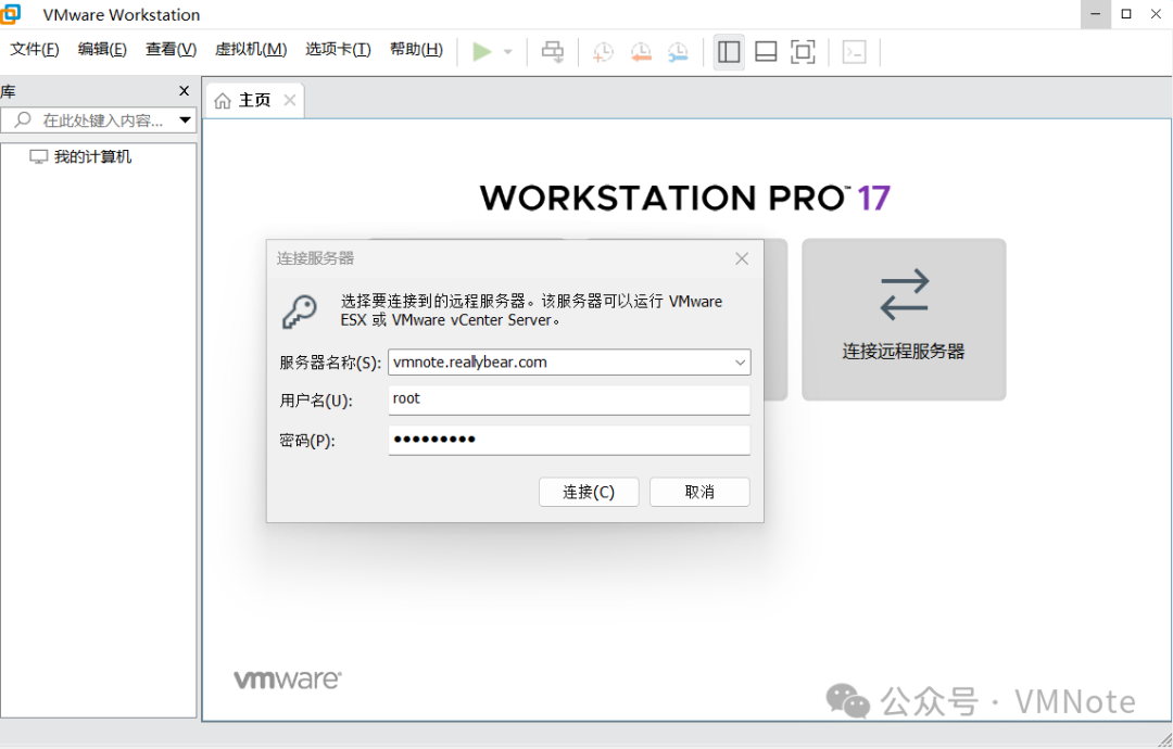 第2步,打开VMware Workstation,在主页里面点击 连接远程服务器