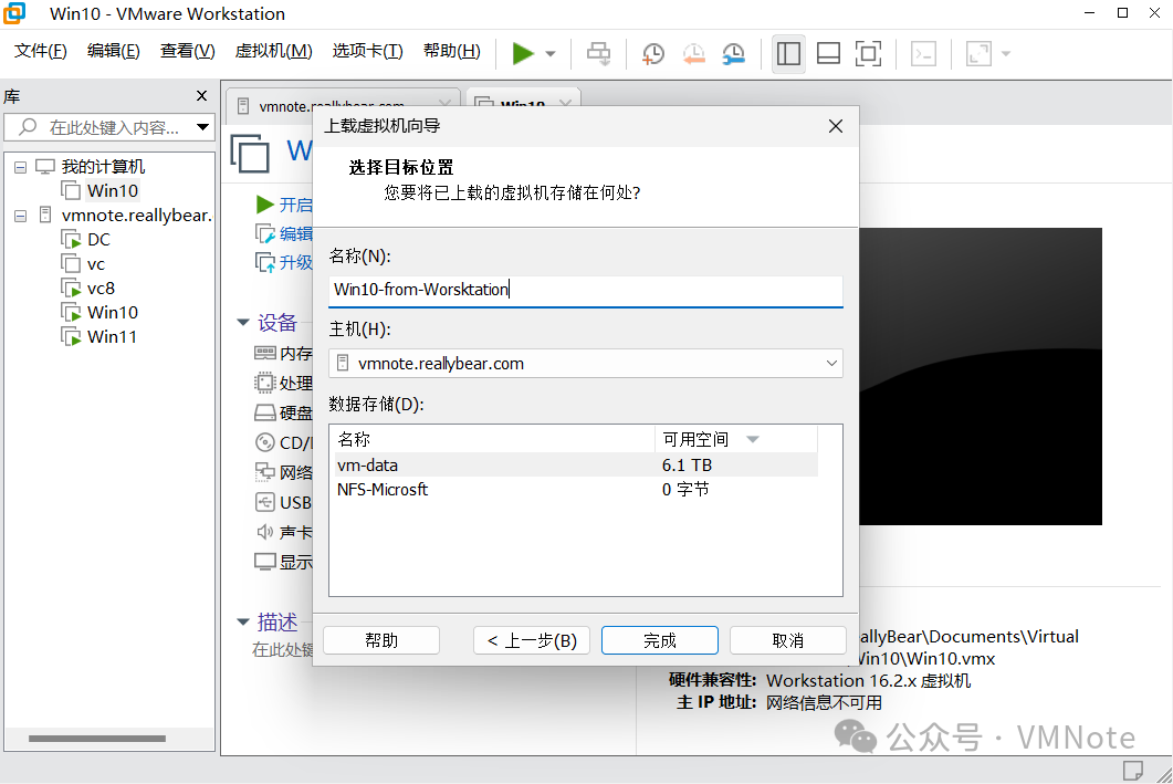 第4步, 在选择存储位置页面,选择虚拟机的放置位置,然后点击完成