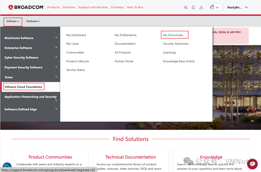 第4步,选择 Software -> VMware Cloud Foundation -> My Download