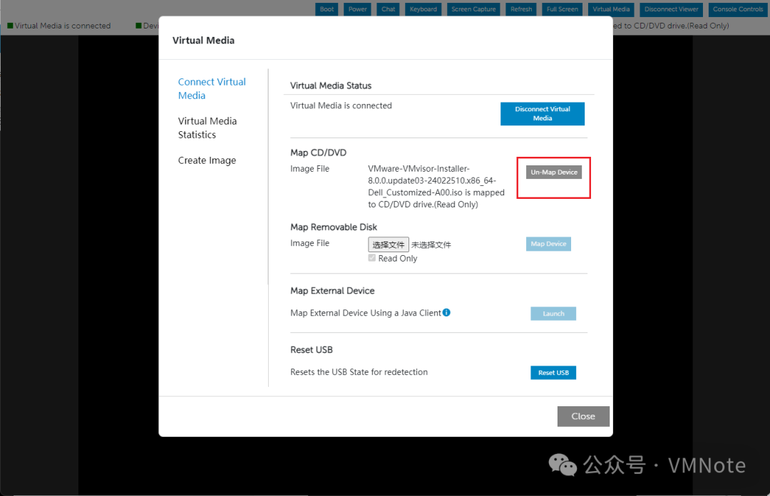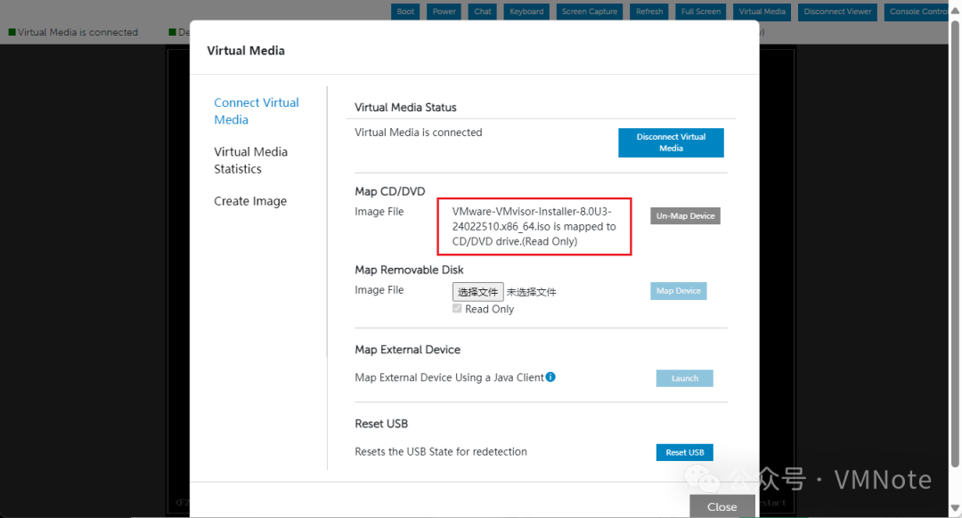 第4步,将下载的ESXi的ISO安装包刻录成引导光盘进行引导,或者也可以借助服务器管理平台(例如,Dell iDRAC,HP iLO)创建虚拟镜像后引导,具体步骤参考:《如何通过iDRAC9将ISO镜像映射成虚拟光驱》