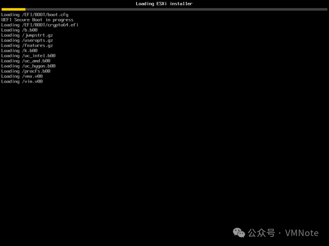 第5步,确认服务器已经开始加载ESXi系统安装文件